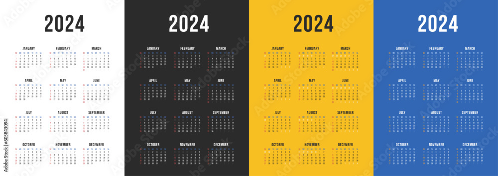 Kalender 2024 mit Kalenderwochen und Feiertagen (pdf, xls & png)